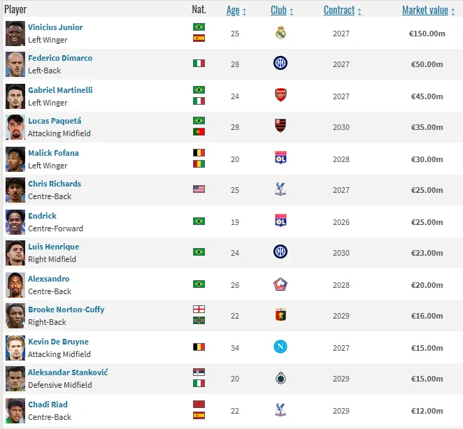 根据德转资料显示,Roc Nation经纪公司旗下拥有维尼修斯、迪马尔科、马丁内利、恩德里克、德布劳内等明星球员。